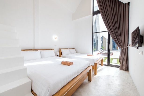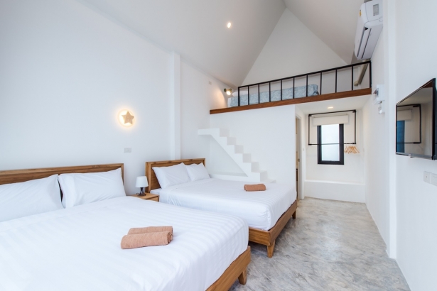 – ห้องที่ 1-7 มีเตียง 5 ฟุต 2 เตียง และ ชั้นลอย มีที่นอน 3.5 ฟุต 1 เตียง