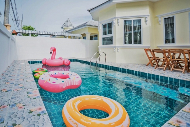 บ้านลูกพลับ หัวหิน พูลวิลล่า บ้านพักสไตล์โมเดิร์นที่มีสิ่งอำนวยความสะดวกครบครัน มีขนาด 3 ห้องนอน 2 ห้องน้ำ รองรับจำนวนผู้เข้าพักได้ 10 ท่าน เสริมได้อีก 2 ท่าน มีที่นอนให้ครบสำหรับทุกท่าน บ้านพักอยู่ซอยหัวหิน 88 โซฟาสามารถปรับนอนได้ถึง 4 ท่าน บ้านพักของเรามีคาราโอเกะ ไฟเธค ให้ได้ปาร์ตี้กันสำหรับท่านไหนที่ชอบเสียงเพลง เพลงของเรารับรองอัพเดตล่าสุด ไม่ซ้ำใครแน่นอน มีสระว่ายน้ำส่วนตัว พร้อมห่วงยางแฟนซี ให้ได้เล่นกันอย่างสนุกสนาน มีอุปกรณ์ครัวให้ครบ สามารถทำอาหารได้ และยังมีเตาปิ้งย่างให้ได้สังสรรค์กันหน้าบริเวณบ้านก็ยังได้