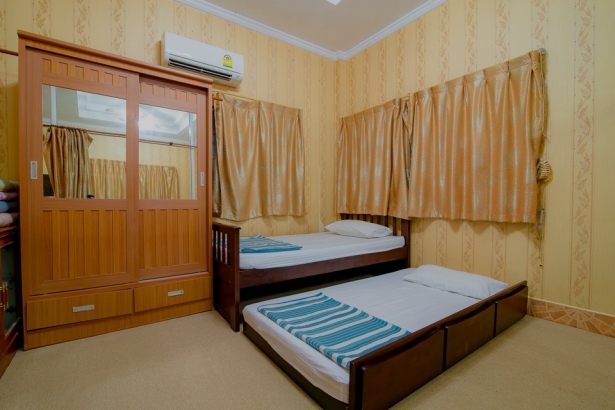 บ้านพักมี เตียง 6 ฟุต 2 เตียง , เตียง 3.5 ฟุต 2 เตียง และที่นอน เสริม 3 ชุด เท่านั้น