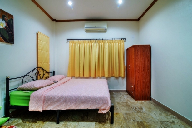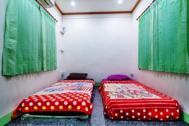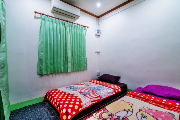 - บ้านพักมี 3 ห้องนอน 2 ห้องน้ำ มีเตียง 6 ฟุต 2 เตียง เตียง 3.5 ฟุต 2 เตียง มีที่นอนเสริมอีก 6 ที่