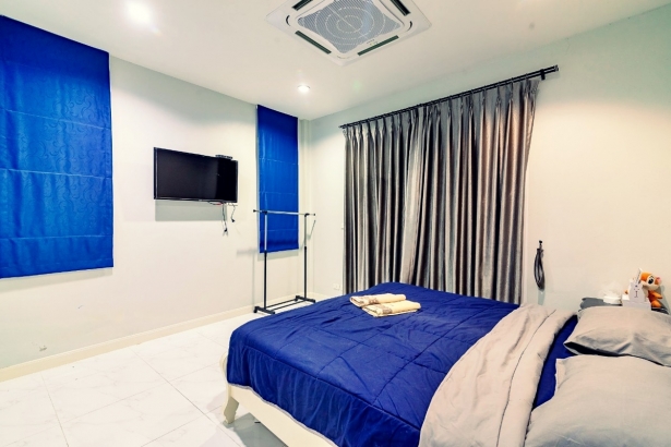 - บ้านพักมีเตียง 6 ฟุต จำนวน 3 เตียง และโซฟาเบด 1 ตัวเท่านั้น