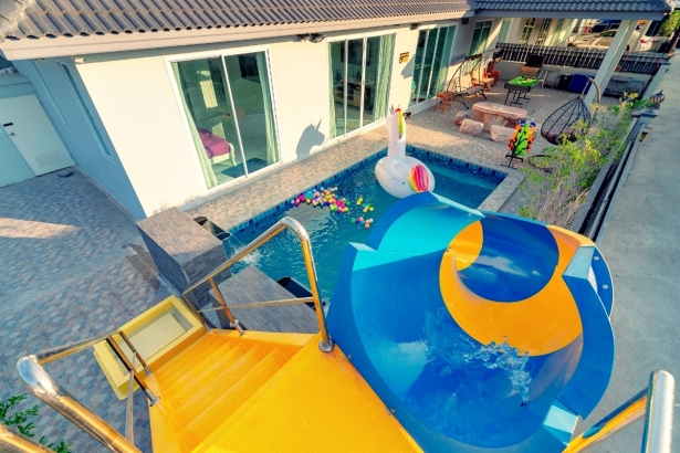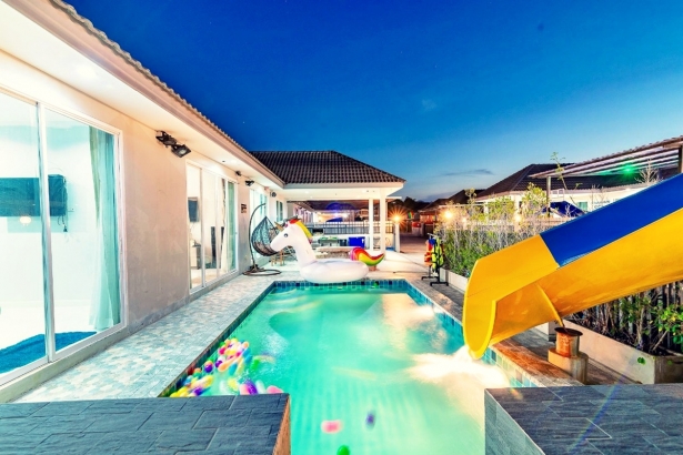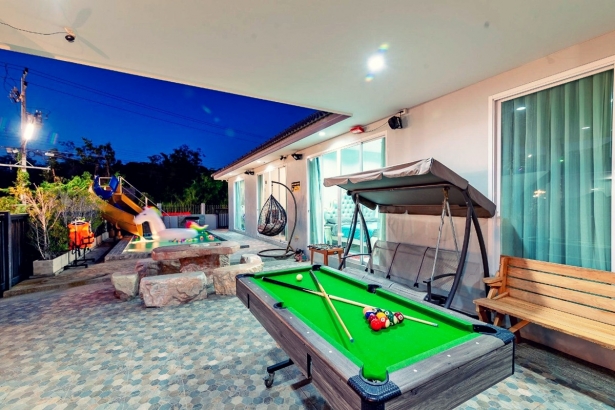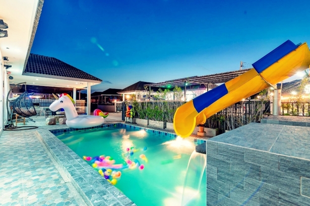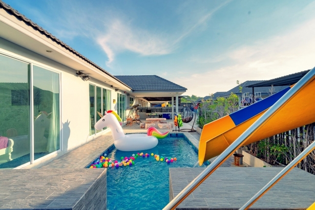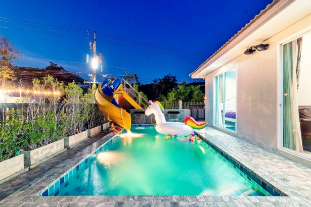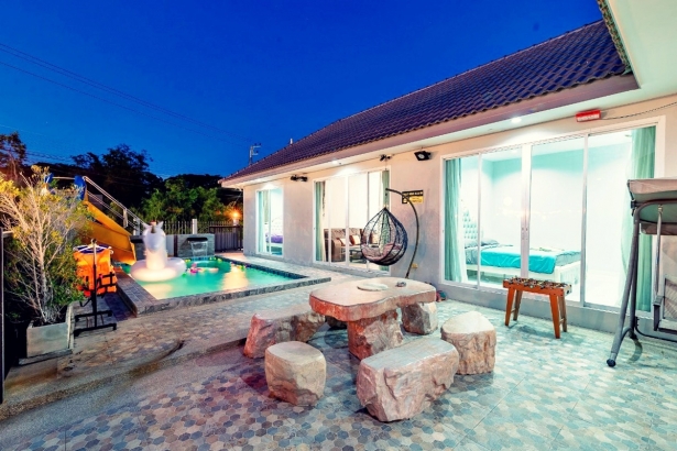 บ้านองศา หัวหิน พูลวิลล่า บ้านพักมี 3 ห้องนอน 2 ห้องน้ำ บ้านพักส่วนตัว สามารถเสียงดังได้ทั้งคืน ตั้งอยู่หัวหินซอย 58 มีสระว่ายน้ำส่วนตัว มีสไลเดอร์ ห่วงยางแฟนซี ภายในบ้านพักมีคาราโอเกะ ไฟเธค ปาร์ตี้ได้กันได้ทั้งวันทั้งคืนอีกด้วย รองรับผู้เข้าพักได้ 12 ท่าน เสริมได้ 3 ท่าน บ้านพักมีห้องครัว พร้อมอุปกรณ์ครัวครบ สามารถทำอาหารได้ ด้านนอกบริเวณสระน้ำก็มีเตาปิ้งย่างเอาไว้ให้บริการอีกด้วย