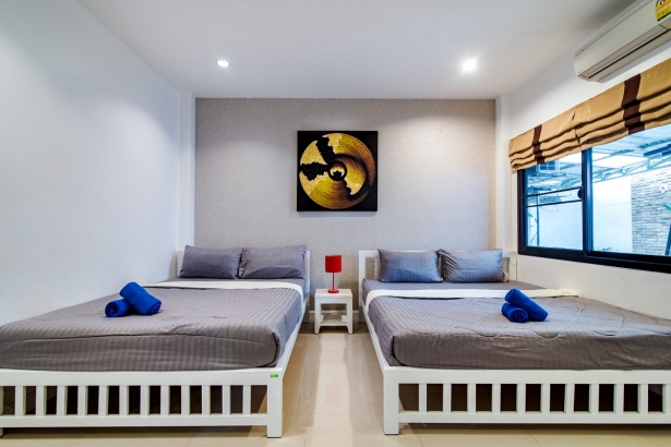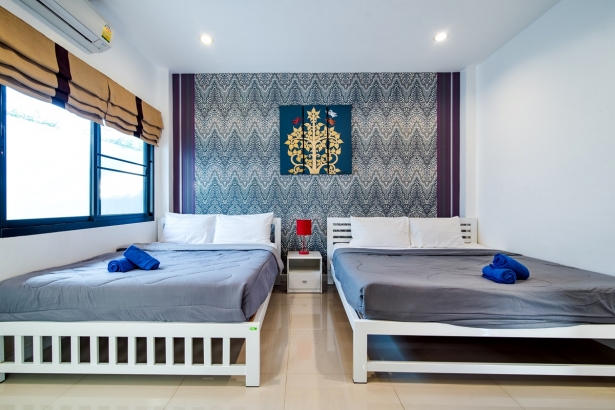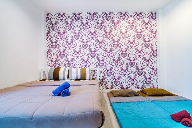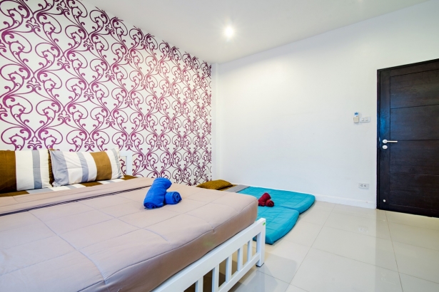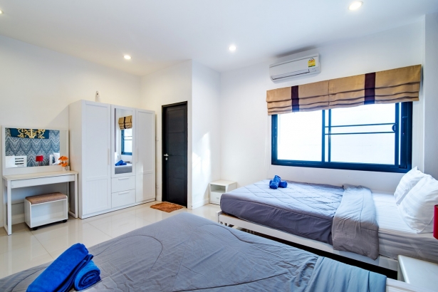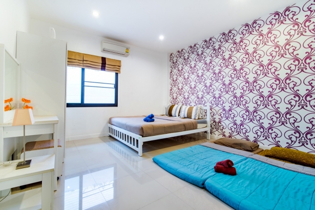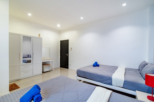 บ้านพักมีเตียง 6 ฟุต 3 เตียง, เตียง 5 ฟุต 2 เตียง, เตียง 3 ฟุต 1 เตียง และโซฟาเบด 1 ตัว