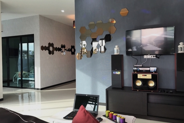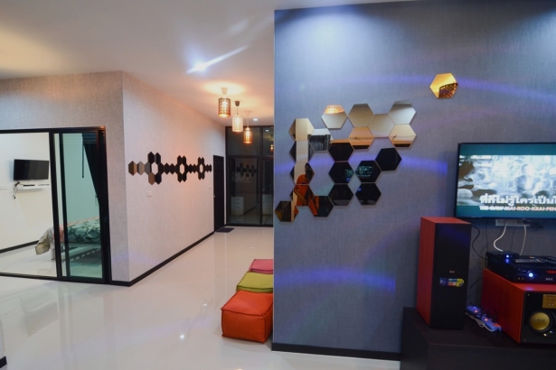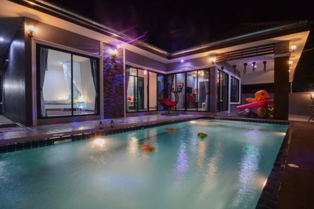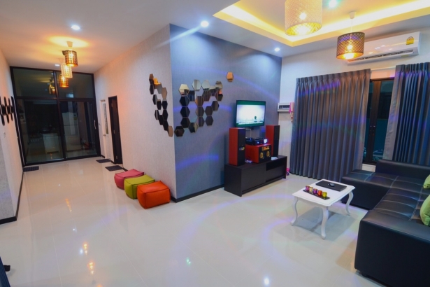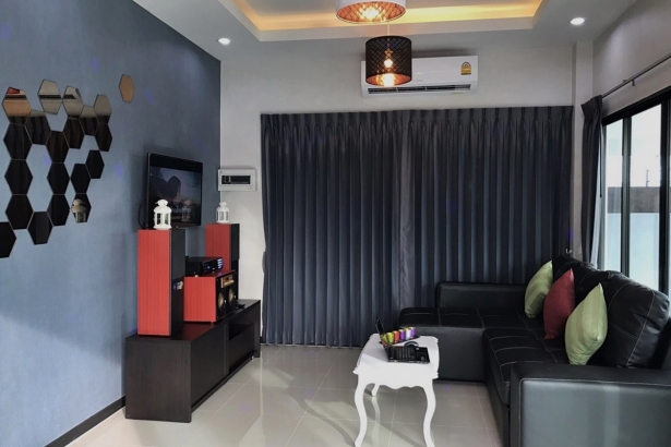 บ้านอินเทรนด์ ชะอำ พูลวิวล่า บ้านพักมีขนาด 3 ห้องนอน 3 ห้องน้ำ 1 ห้องครัว 1 ห้องนั่งเล่น บรรยากาศดี ร่มรื่น มีสระว่ายน้ำส่วนตัว ขนาด 3 x 7 เมตร ลึก 1.20 เมตร ที่มาพร้อม คาราโอเกะ และ ไฟเธค เหมาะสำหรับคนที่ชอบร้องเพลง และชอบงานปาร์ตี้สังสรรค์ ต่าง ๆ สามารถเสียงดังได้ไม่เกิน 22.00น บ้านพักติดเครื่องปรับอากาศทั้งหลัง มีสิ่งอำนวยความสะดวกครบครันเช่น ไมโครเวฟ, หม้องหุงข้าว, เตาปิ้งย่าง, กาน้ำร้อน สามารถทำอาหารได้ ปิ้งย่างได้