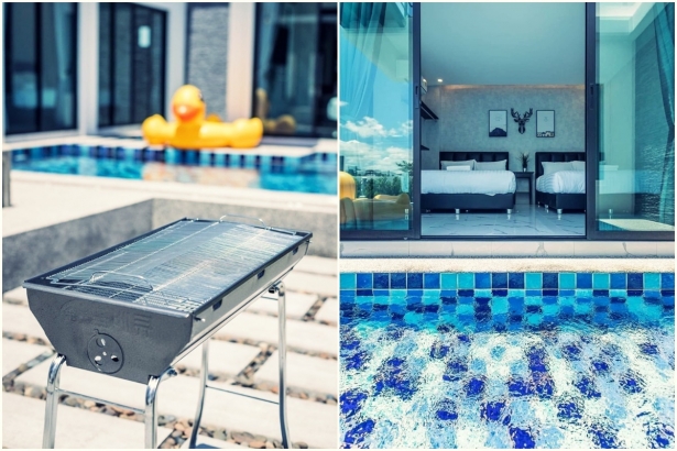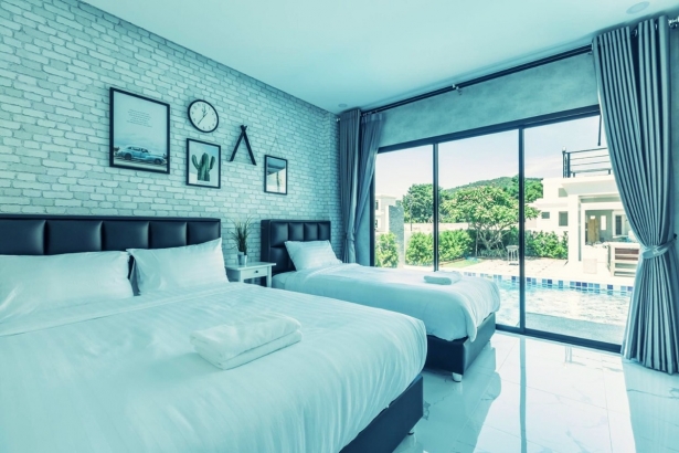 – ห้องที่ 3 มีเตียง 5 ฟุต 2 เตียง - สระว่ายน้ำส่วนตัว (รูปตัว L)