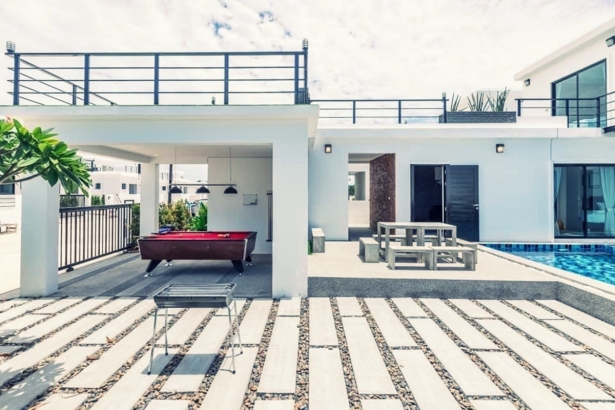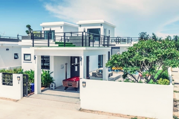 บ้านอิมพอร์ต หัวหิน พูลวิลล่า ตั้งอยู่หัวหินซอย 6 บ้านพักมี 3 ห้องนอน 4 ห้องน้ำ สระว่ายน้ำส่วนตัว (รูปตัวL) พร้อมสระเด็ก มีดาดฟ้าชมวิว รองรับลูกค้าได้ 7-11 ท่าน เสริมได้ 3 ท่าน บริการ!! คาราโอเกะ ไฟเธค/โต๊ะพูล อินเทอร์เน็ตไร้สาย (Wi-Fi) ฟรี เครื่องปรับอากาศทุกห้อง ทีวีทุกห้อง อุปกรณ์ครัว เตาปิ้งย่างครบ สุนัข(พันธุ์เล็ก) เข้าพักได้ (มีค่าบริการ)