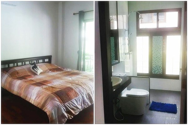 - 3 ห้องนอน 2 ห้องน้ำ มีเตียง 6 ฟุต 3 เตียง ที่นอนเสริมขนาด 5 ฟุต 2 ที่ ขนาด 3.5 ฟุต 1 ที่ และโซฟาเบด 1 เตียงเท่านั้น