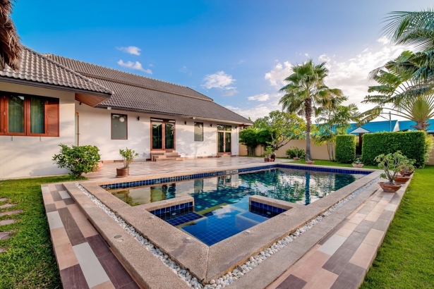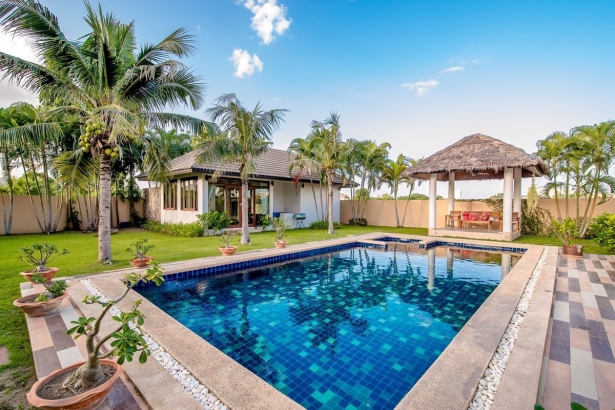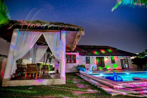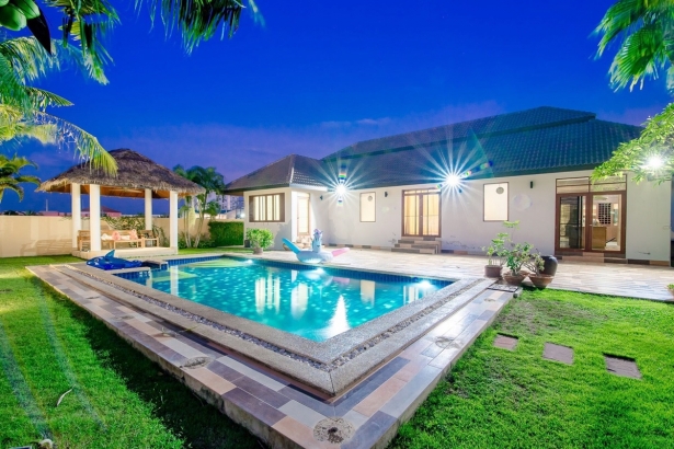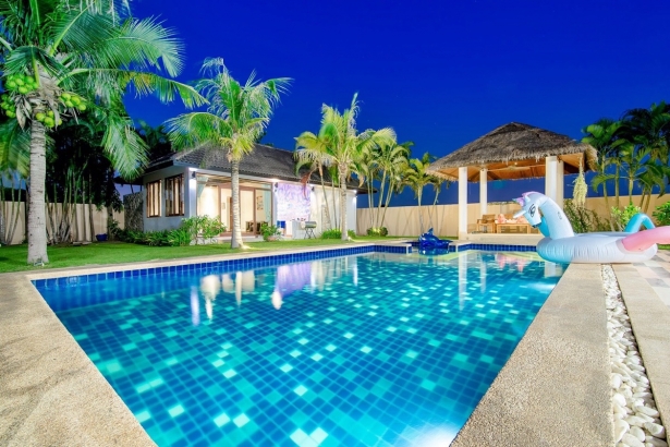 บ้านเขียนฝัน หัวหิน พูลวิลล่า บ้านชั้นเดียวตกแต่งแบบโมเดิร์น พื้นที่ใช้สอยกว้างขวาง มีขนาด 5 ห้องนอน 6 ห้องน้ำ 1 ห้องนั่งเล่น 1 ครัว ตั้งอยู่หัวหิน ซอย 102 รองรับได้ถึง 15- 25 ท่าน สระว่ายน้ำส่วนตัว ขนาด 5×10 เมตร พักผ่อนแช่น้ำเย็นๆในหายร้อน สำหรับสายบันเทิงไม่ควรพลาดทางเราก็มีคาราโอเกะ ไฟเธค โต๊พูล ห่วงยางแฟนซีพร้อมลูกบอลในสระ ไว้บริการฟรี!! ให้ร้องเล่นเต้นมันส์กันไปเลย ภายในบ้านติดแอร์ทั้งหลัง อุปกรณ์ครัวครบ พร้อมเตาปิ้งย่าง สิ่งอำนวยความสะดวกครบครัน ทำให้ไม่ต้องออกไปไหนก็เพลินไปกับการพักผ่อนเหมือนอยู่บ้านตัวเอง สำหรับลูกค้าที่รักสุนัขไม่ควรพลาดทางบ้านพักของเราสามารถนำสุนัขเข้าพักได้ (มีค่าบริการ)