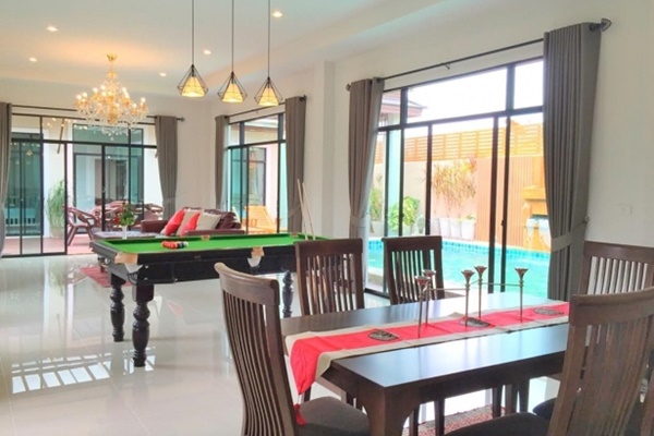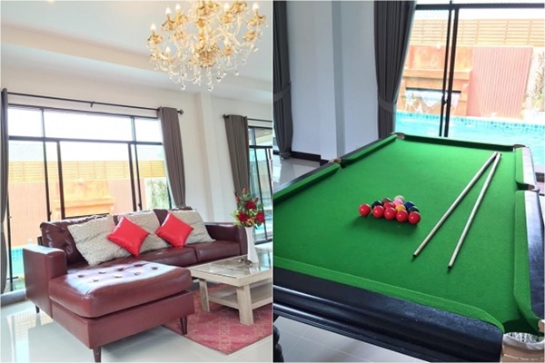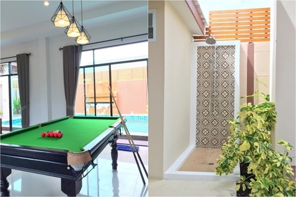 บ้านเขียนรัก หัวหิน พูลวิลล่า บ้านพักหลังใหญ่สุดฟิน ประกอบไปด้วย 4 ห้องนอน 4 ห้องน้ำ มีเตียงขนาด 5 ฟุต 7 เตียง เท่านั้น ติดเครื่องปรับอากาศทั้งหลัง พร้อมไปด้วยโต๊ะสนุ๊ก และคาราโอเกะสุดฟิน รองรับผู้เข้าพักได้ 14 ท่านเสริม 6 ท่านรวมเป็น 20 ท่าน มีสระว่ายน้ำส่วนตัว ขนาดใหญ่ 5 x 10 เมตร ตั้งอยู่หัวหินซอย 88 สิ่งอำนวยความสะดวกครบครัน มีอุปกรณ์ครัว พร้อมด้วยเตาปิ้งย่างสำหรับประกอบอาหารได้