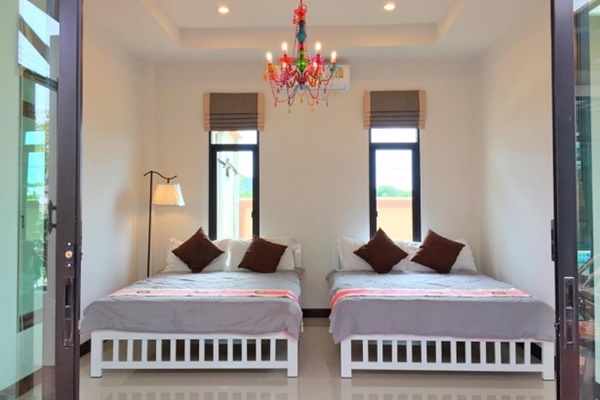 - บ้านพักมี 4 ห้องนอน 4 ห้องน้ำ มีเตียงขนาด 5 ฟุต 7 เตียง เท่านั้น