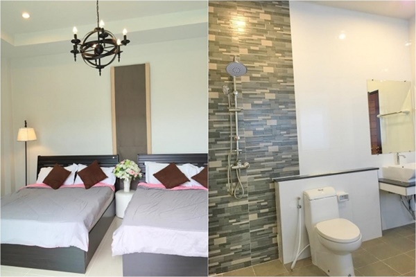 – ห้องที่ 2 เตียง 5 ฟุต 2 เตียง มีห้องน้ำและอ่างอาบน้ำ