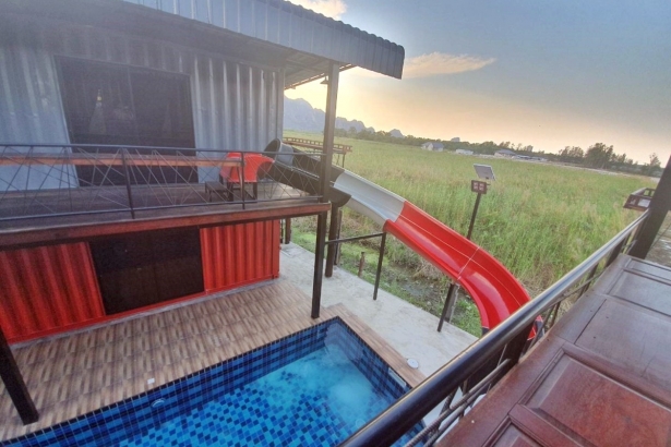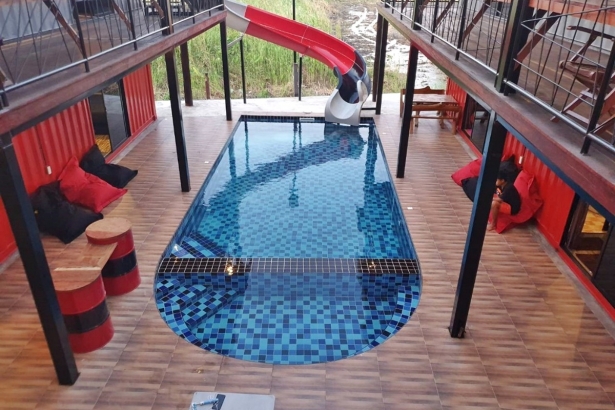 - สระว่ายน้ำส่วนตัว(5×10 เมตร) สระเด็ก ลึก (80 ซม.)