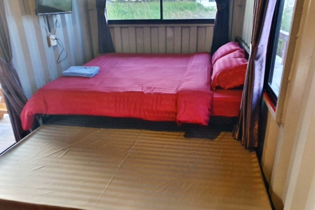 – ห้องที่ 1 มีเตียง 6 ฟุต 1 เตียง เตียงลิ้นชัก 5 ฟุต 1 เตียง