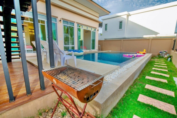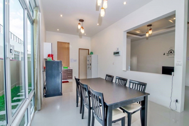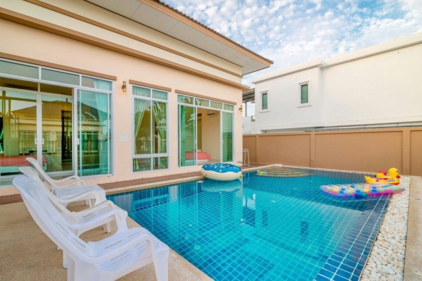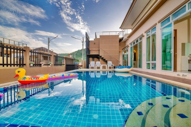 บ้านเพียงดาว หัวหิน พูลวิลล่า บรรยากาศดีเงียบสงบ ตั้งอยู่ซอยหัวหิน 6 รองรับได้ 10 ท่าน เสริมได้ 5 ท่าน มีที่นอนเสริม บ้านพักมี 3 ห้องนอน 3 ห้องน้ำ สระว่ายน้ำส่วนตัว พร้อมลูกบอลในสระ เพลิดเพลินกับคาราโอเกะ ไฟเธค โต๊ะสนุ๊ก เหมาะสำหรับคนที่ชอบร้องเพลงและจัดงานปาร์ตี้ ขับรถไปทะเลประมาณ 10-15 นาที สิ่งอำนวยความสะดวกครบครัน มีอุปกรณ์ครัวครบ ทำอาหารได้ ปิ้งย่างได้