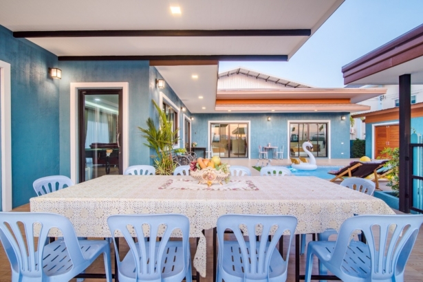 บ้านเอลลี่ หัวหิน พูลวิลล่า มีขนาด 3 ห้องนอน 3 ห้องน้ำ บ้านใหม่สวยตรงปก บรรยากาศดี เหมาะสำหรับครอบครัวในวันพักผ่