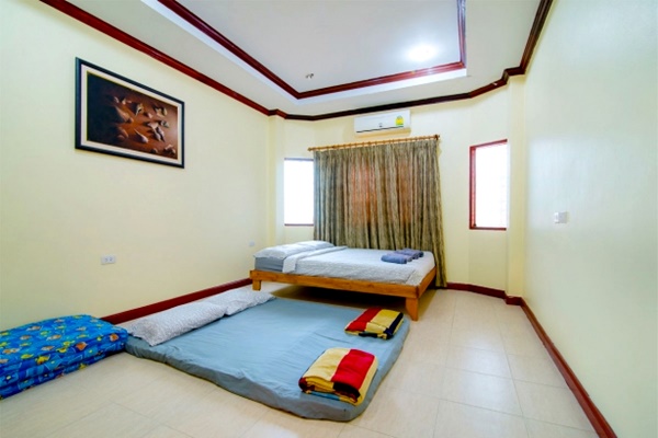 - บ้านพักมีเตียง 6 ฟุต 2 เตียง, 5 ฟุต 2 เตียง และ ที่นอนเสริมตามจำนวนคนเข้าพัก