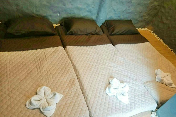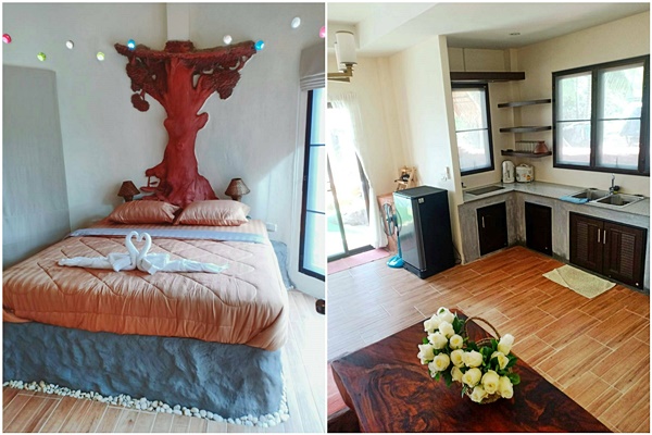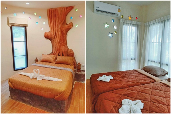- บ้านพักมีเตียง 6 ฟุต 1 เตียง , เตียง 5 ฟุต 2 เตียง เบาะ 3.5 ฟุต 2 ที่ และเบาะ 3 ฟุต 2 ที่ และ โซฟาเบด นอนได้ 2 ท่าน