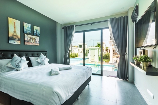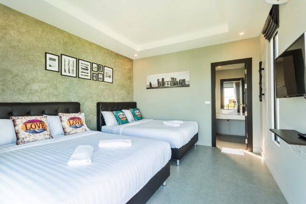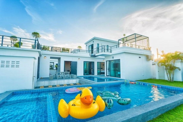 บ้านโรสแมรี่ หัวหิน พูลวิลล่า บ้านพักขนาด 3 ห้องนอน 4 ห้องน้ำ สไตล์โมเดิร์น ที่มีพื้นที่ใช้สอยกว้างขวาง เหมาะกับการปาร์ตี้ ปิ้งย่างเป็นอย่างมาก บ้านพักมีสระว่ายน้ำส่วนตัวที่บอกว่าไม่เหมือนใคร เพราะมีถึง 2 สระใหญ่กันเลยทีเดียว ทั้งสระผู้ใหญ่ และสระเด็ก ที่สำคัญ แถมห่วงยางแฟนซีให้ใช้ฟรีกันอีกด้วย บ้านพักตั้งอยู่หัวหินซอย 6 นอกจากนั้นยังมีดาดฟ้าชมวิว เป็นแนวยาว ให้ได้นั่งชิวกันอีก สะดวกสบายกันสุดๆเลย ภายในบ้านพัก ก็จะมีคาราโอเกะ ไฟเธค ให้บริการ เหมาะสำหรับท่านไหนที่ชอบร้องเพลง ส่วนใครที่เป็นสายเเข้าครัว แน่นอน บ้านพักของเราห้องครัว พร้อมอุปกรณ์ครัวครบครัน แถมปิ้งย่างบริเวณสนามหญ้าได้อีกด้วย