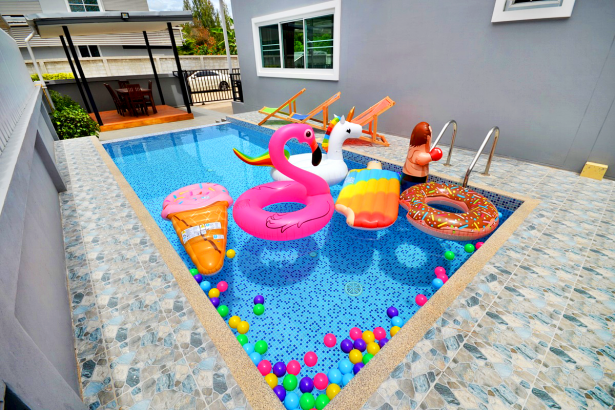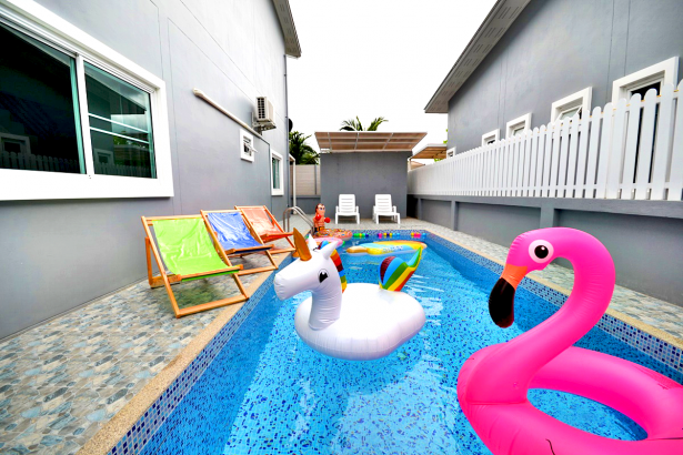บ้านโอบดาว หัวหิน พูลวิลล่า บ้านพักหลังใหม่ สไตล์โมเดิร์น มีความเป็นส่วนตัว ขนาด 3 ห้องนอน 3 ห้องน้ำ สามารถรองรับผู้เข้าพักได้ 10-12 ท่าน สระว่ายน้ำส่วนตัว แถม!! บริการลูกบอลเล่นในสระ สำหรับกิจกรรมในที่พัก พลาดไม่ได้แน่นอน ทางบ้านพักมีบริการคาราโอเกะ ไฟเธค เอาใจสายแด๊นซ์ และ ยังมีบริการโต๊ะสนุ๊ก กีฬาในที่ร่ม เพิ่มความสุนกสนาน เหมาะสำหรับ กลุ่มครอบครัว และ กลุ่มเพื่อน พร้อมบริการอุปกรณ์ครัว เตาปิ้งย่าง ครบ สามารถประกอบอาหารได้ จัดปาร์ตี้เล็กๆ ภายในที่พัก ได้ ตอบโจทย์สำหรับคนรักสุนัข สามารถนำเข้าพักได้(มีค่าบริการ) ทำเลดีติดถนน ตรงข้ามมี 7-11 และ Family Mart