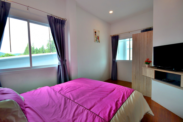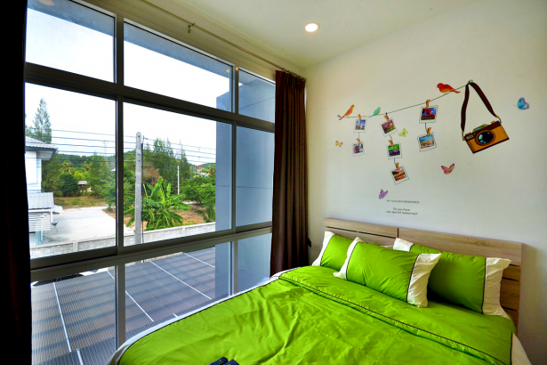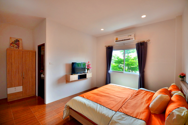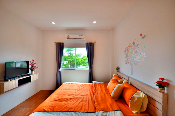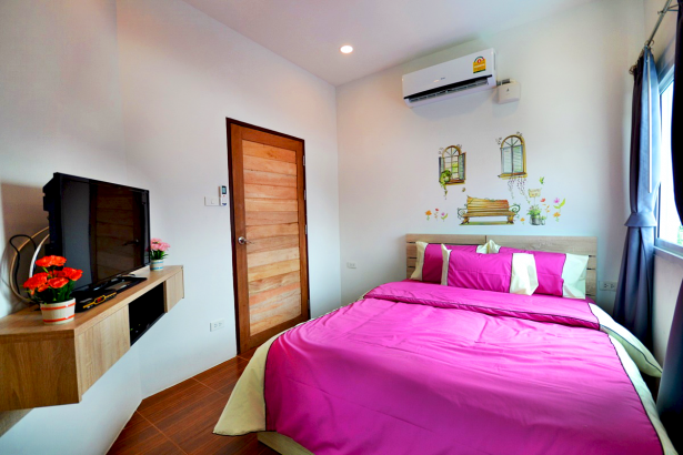 • บ้านพักมีเตียง 6 ฟุต 1 เตียง ,เตียง 5 ฟุต 2 เตียง และที่นอนเสริมห้องละ 1 ชุด