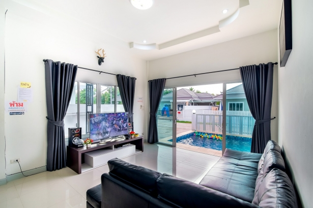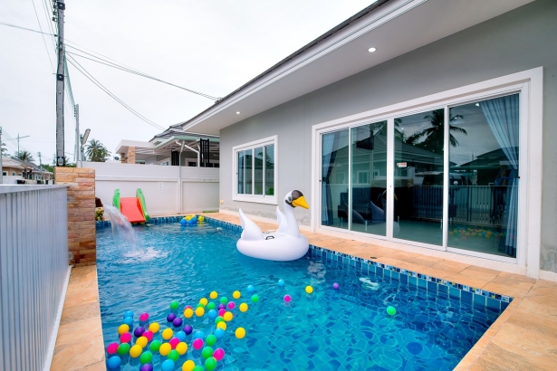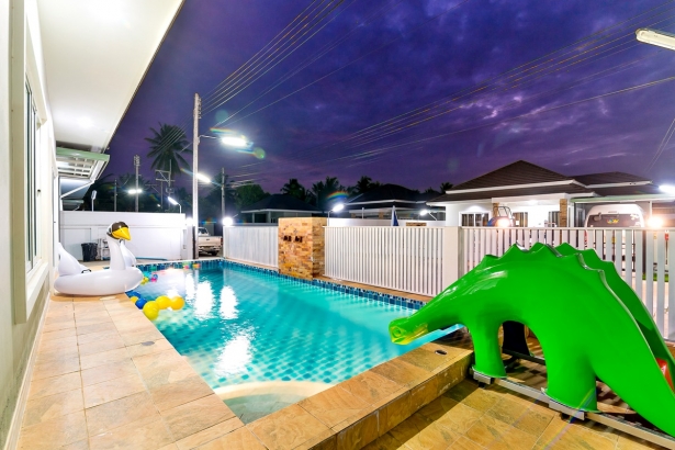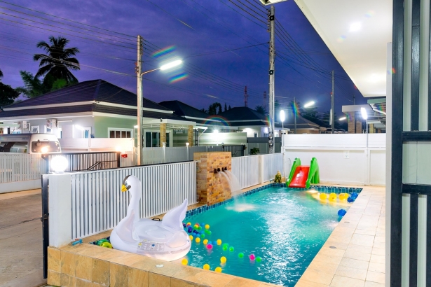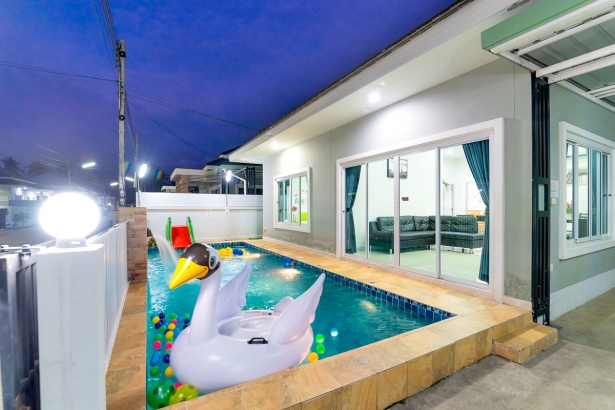 บ้านโอบฝัน หัวหิน พูลวิลล่า บ้านพักมี 3 ห้องนอน 2 ห้องน้ำ รองรับได้ 10 ท่าน เสริมได้ 3 ท่าน บ้านพักหลังใหม่ที่มาพร้อมกับบรรยากาศใต้แสงจันทร์ ติดแอร์ทั้งหลัง ตั้งอยู่ซอยหัวหิน 70 ประกอบไปด้วย สระว่ายน้ำส่วนตัว ขนาด 3 x 8 เมตร พร้อมสไลเดอร์ริมสระ มีคาราโอเกะ (Andriod Box) ไฟเธค โต๊ะสนุ๊ก บ้านพักใกล้ Family Mart และ เซเว่น อีเลฟเว่น เพียง 100 เมตรเท่านั้น