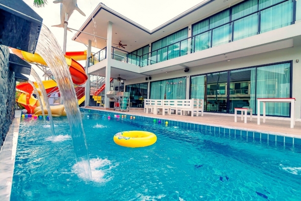 บ้านโฮย่า หัวหิน พูลวิลล่า ตั้งอยู่หัวหินซอย 10 บ้านหลังใหญ่ 5 ห้องนอน 8 ห้องน้ำ สระว่ายน้ำส่วนตัว จากุซซี่ (ระบบเกลือ) สไลเดอร์ พร้อมห่วงยางแฟนซี เครื่องปรับอากาศทั้งหลัง รองรับลูกค้าได้ 18 ท่าน เสริม 7 ท่าน ปาร์ตี้เสียงดังได้ ถึง 24.00 น. บริการ!! คาราโอเกะ ไฟเธค โต๊ะสนุ๊ก อินเทอร์เน็ตไร้สาย (Wi-Fi) ฟรี อุปกรณ์ครัว เตาปิ้งย่างครบ สิ่งอำนวยความสะดวกมากมาย