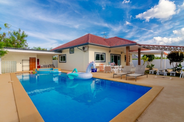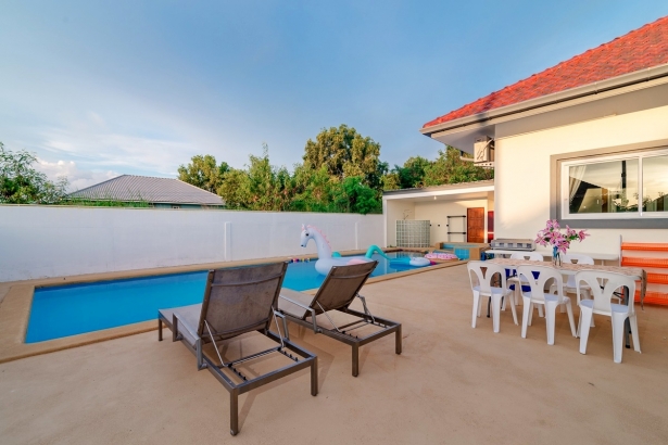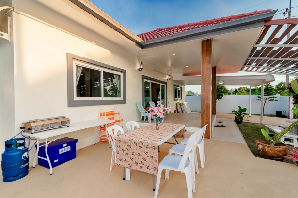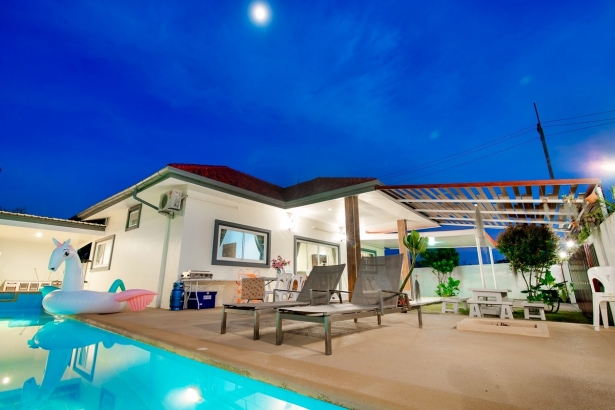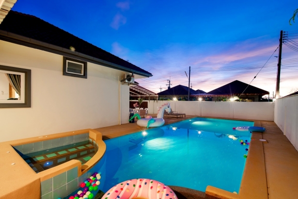 บ้านฮานะ หัวหิน พูลวิลล่า บ้านชั้นเดียว ตั้งอยู่หัวหินซอย 70 มีขนาด 3 ห้องนอน 3 ห้องน้ำ รองรับลูกค้าได้ 10 ท่าน เสริมได้อีก 10 ท่าน สระว่ายน้ำส่วนตัว(ขนาด 5×15 เมตร) พร้อมห่วงยางแฟนซี ลูกบอลสำหรับเล่นในสระ บริการฟรี!! คาราโอเกะ ไฟเธค สามารถปาร์ตี้เสียงดังได้ทั้งคืน เหมาะสำหรับจัดเลี้ยงสังสรรค์เป็นที่สุด อุปกรณ์ครัว เตาปิ้งย่างครบ สามารถทำอาหารได้ มีมุมทานอาหารริมสระน้ำ สิ่งอำนวยความสะดวกครบครัน สะดวกสบาย ทั้งยังมีบริเวณบ้านพัก สำหรับทำกิจกรรมต่างๆได้อีกด้วย